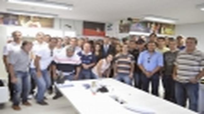 A Secretaria de Estado do Esporte e do Turismo (SEET) recebeu na manhã da última quinta-feira (23) em sua sede em Curitiba a visita de gestores esportivos de municípios do Norte Pioneiro do Estado do Paraná, eles participaram de uma apresentação sobre o histórico da SEET e puderam conhecer mais de perto alguns dos projetos e programas desenvolvidos pela pasta. O secretário Evandro Roman esteve presente e deu as boas vindas aos gestores e falou do grande momento que o esporte do Paraná está vivendo. O histórico da Secretaria foi apresentado pela servidora Fernanda Jantsch, ela também mostrou para os presentes a recém criada ferramenta Geo Esporte, que esta disponível no site da Secretaria, onde é possível localizar no mapa do Estado do Paraná todos os locais que possuem projetos desenvolvidos na área do esporte pelo governo, além de localizar atletas que recebem bolsas do Talento Olímpico do Paraná. “O Geo Esporte apresenta um diagnóstico do trabalho realizado pela Secretaria do Esporte no Estado do Paraná”, comentou Fernanda Jantsch. Presente também o diretor geral da SEET, Alberto Martins de Faria, explicou como será a relação do órgão estadual junto aos municípios neste ano de 2014, através dos apoios as diversas competições e projetos esportivos. Após o diretor geral o secretário Roman falou da alegria de estar recebendo representantes de municípios do Norte Pioneiro e quanto essa região cresceu no cenário esportivo nos últimos três anos. “Fico muito contente de estar recebendo os amigos do Norte Pioneiro uma região que cresceu muito e que tem demostrado uma paixão muito grande pelo esporte. Hoje encontramos as cidades participando do cenário esportivo do estado. E assim como no Norte Pioneiro observamos esse desenvolvimento esportivo nas demais regiões do Paraná, isso se deve a nova política esportiva implantada no Estado do Paraná pelo governador Beto Richa, que visa o desenvolvimento do ser humano acima de tudo”, disse Evandro Rogério Roman. Após a fala do secretário Roman o professor de educação física Juliano Viceli, fez questão de dar seu depoimento sobre a atual situação do esporte na região, atuando desde 2003 como professor da rede estadual e atualmente no município de Ribeirão do Pinhal ele diz nunca ter visto o esporte tão bem, o professor de educação física tão valorizado. “Antes de 2011 o esporte e o professor de educação física estavam esquecidos pelo Estado e agora nos últimos três anos observamos um crescimento no apoio e a valorização do profissional, isso em todos os municípios da nossa região”. O secretário municipal de esportes de Ribeirão do Pinhal, Willian Antônio de Paula, também deu seu depoimento e registrou a sua grande felicidade de ver as cidades do Norte Pioneiro novamente interessadas no esporte e tudo isso graças a nova política esportiva do Governo do Paraná, desenvolvida pelo secretário Evandro Roman e pelo governador Beto Richa. Segundo ele o contentamento com o esporte é tanto que cidades da região já registraram sua vontade de sediar fases finais de competições oficiais do estado.