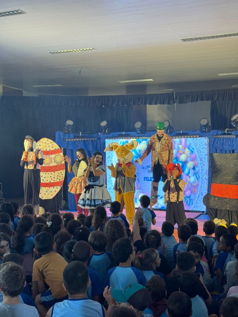 A apresentação, conduzida pela Companhia Circo Teatro Sem Lona, encantou as crianças ao reunir teatro, música, dança e momentos de interação, proporcionando uma experiência lúdica e envolvente. As crianças participaram ativamente das atividades, vivenciando a magia da Páscoa de forma criativa e educativa.