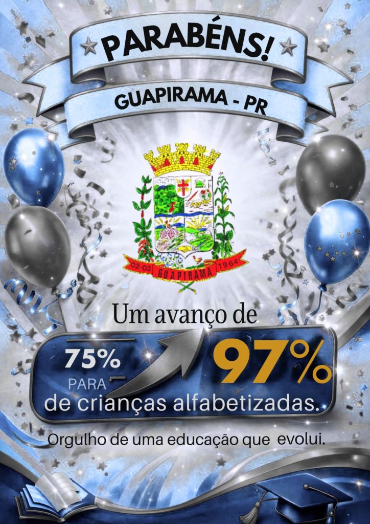 O Município de Guapirama tem motivos para comemorar na área da educação. De acordo com dados apresentados pelo Compromisso Nacional da Criança Alfabetizada no dia 1 de abril, o índice de alfabetização dos estudantes apresentou uma evolução significativa entre os anos de 2023 e 2025.