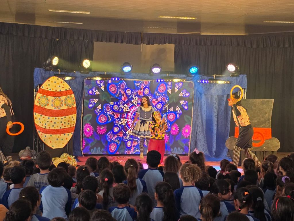 A apresentação, conduzida pela Companhia Circo Teatro Sem Lona, encantou as crianças ao reunir teatro, música, dança e momentos de interação, proporcionando uma experiência lúdica e envolvente. As crianças participaram ativamente das atividades, vivenciando a magia da Páscoa de forma criativa e educativa.